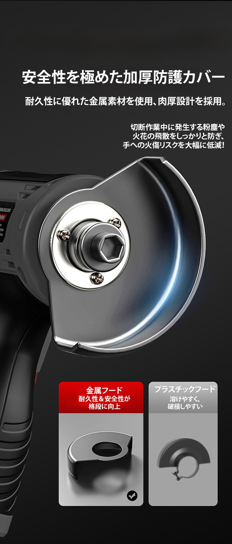 安全カバー付きミニアングルグラインダーの詳細画像