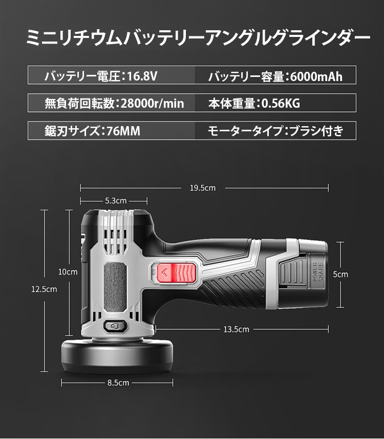 高性能リチウムバッテリー搭載アングルグラインダー