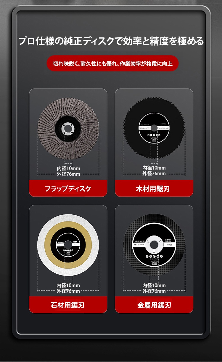 複数のアタッチメントが使えるアングルグラインダー